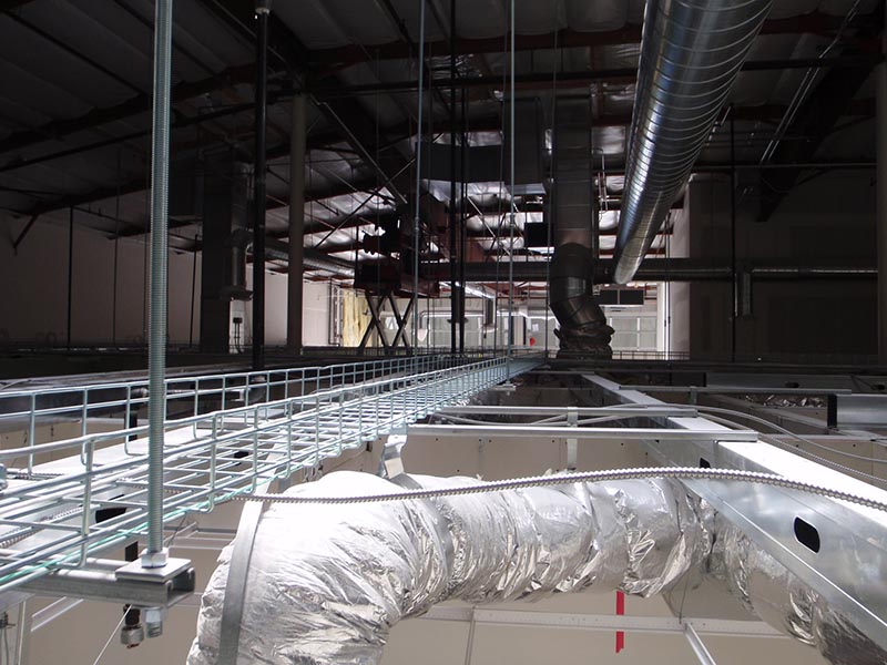 • Added skylights, roof mounted mechanical units, glass feature walls, exposed ductwwork and cable trays within tall space