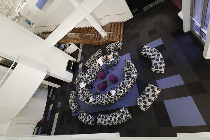 • High end, suspended glass doors, custom “pod” workstations, high density filing and audio storage systems